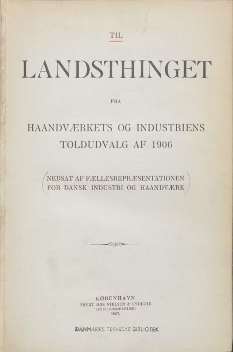 Fra Haandværkets Og Industriens Toldudvalg Af 1906